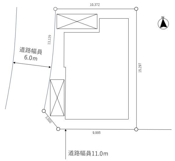 | 土地面積基準 | 公簿 | 接道 | 公道 南 幅員11m 私道 西 幅員6m |